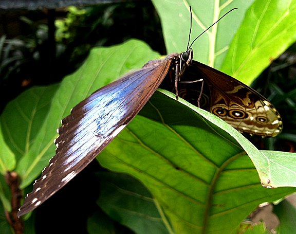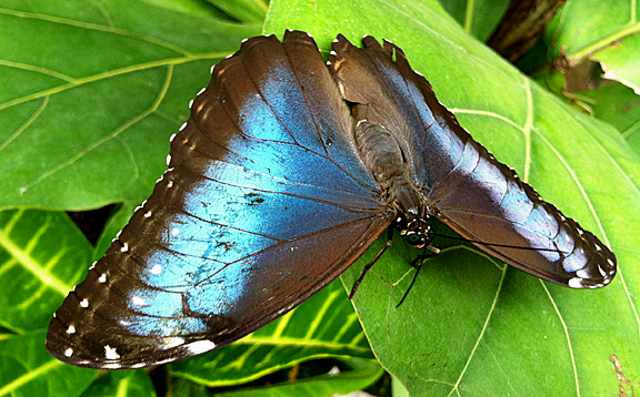 Certainly there are lots of butterflies. One of the most popular is the blue morpho, which looks like this open: