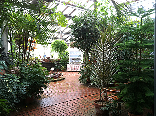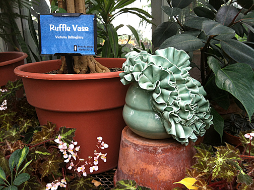 Art exhibits periodically grace the gardens. This work by Victoria Billingham is one of three in the conservatory, and there are more throughout the gardens.