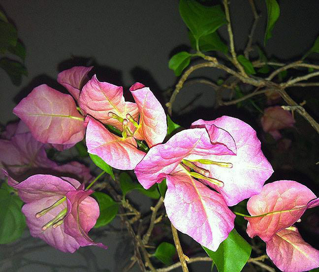 As usual, my bougainvillea blooms in the dead of winter. This summer outside it bloomed only once, and only three flowers. Now there are about 40.