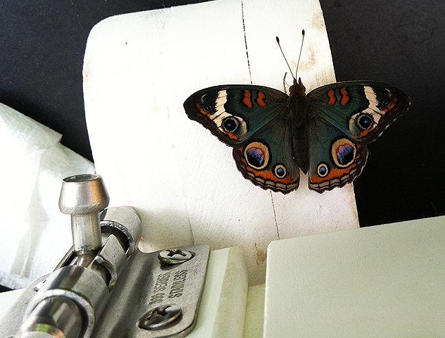 I felt their pain. Among the varieties I saw but didn’t get were a queen (my own fault, I put one in the nursery tree but forgot to shoot it), Mexican bluewing, tailed jay and the tiny but striking Atala hairstreak.