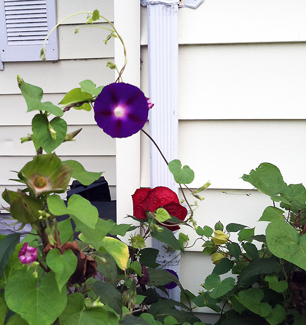 These are all from Sept. 29, just a week out of summer here in Bay City, Michigan. The morning glories have invaded everything: