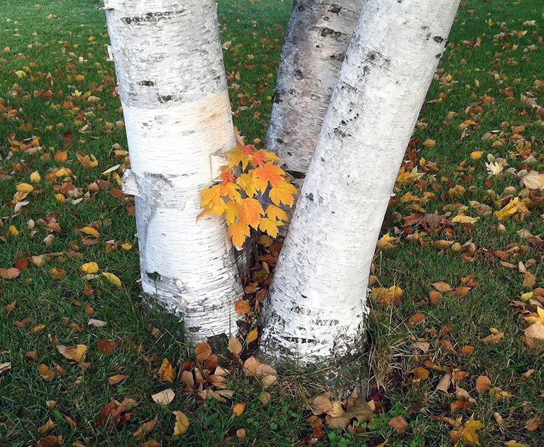 We’re used to maple saplings sprouting all over the yard, but this is the first one we’ve had within another tree.