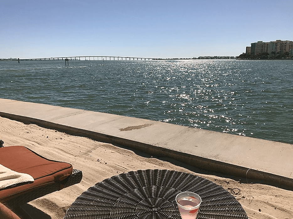 The hotel’s beach. No swimming there, because of the boat traffic all around the key, but there were a pool and hot tub nearby. If you didn’t grab a towel on your way past the cabanas they were stored in, an attendant would be over offering one and asking if you wanted it spread on the chair.