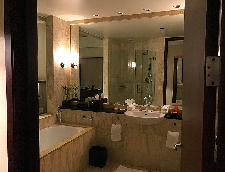 Some of the standard amenities. We were spoiled and it was wonderful. I miss the spa’s eucalyptus steam room. When we checked out, we were asked if we wanted bottled water for the road. Yes? Then room temperature or cold?