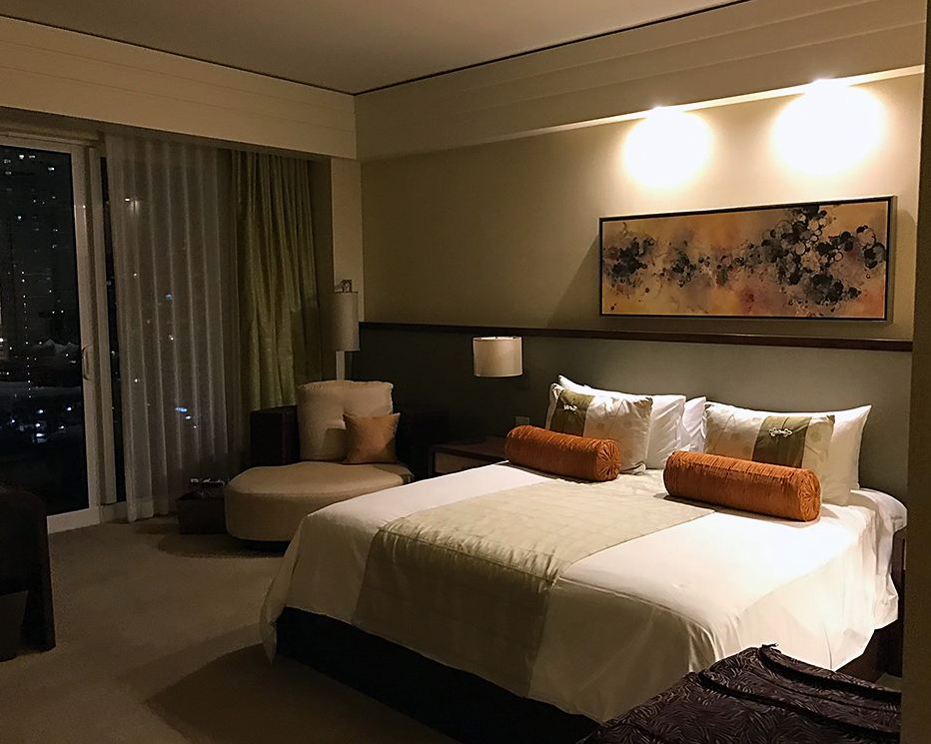 Our room, including a three-door-wide glass span. This time of year it runs just shy of $600 a night. We stayed in this luxury hotel because I’d won a three-night stay in a contest, as well as couples massage, dinner at La Mar and airfare.