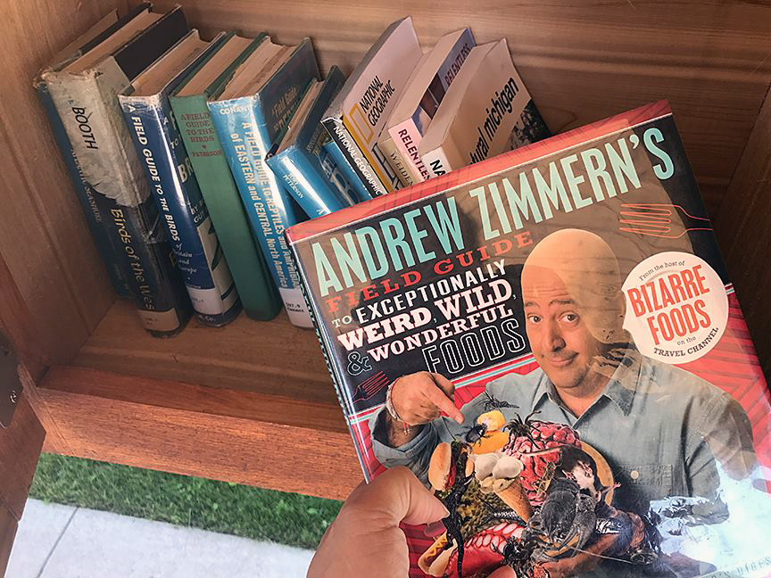 I picked this book up at the annual library used book sale, but realized shortly in that it was geared toward children. I love Andrew Zimmern and his shows, but I didn’t enjoy being talked to as if I were 10. Fortunately, there is a Little Free Library very near my home, right across from a children’s play spot. The library is only a few months old and the starter books are nature-oriented, but I still thought this would be a good fit.