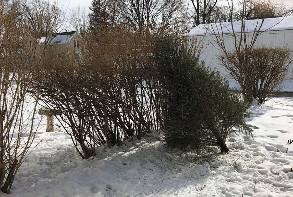 Our Christmas trees always get another life as cover at one of our winter critter feeding spots: