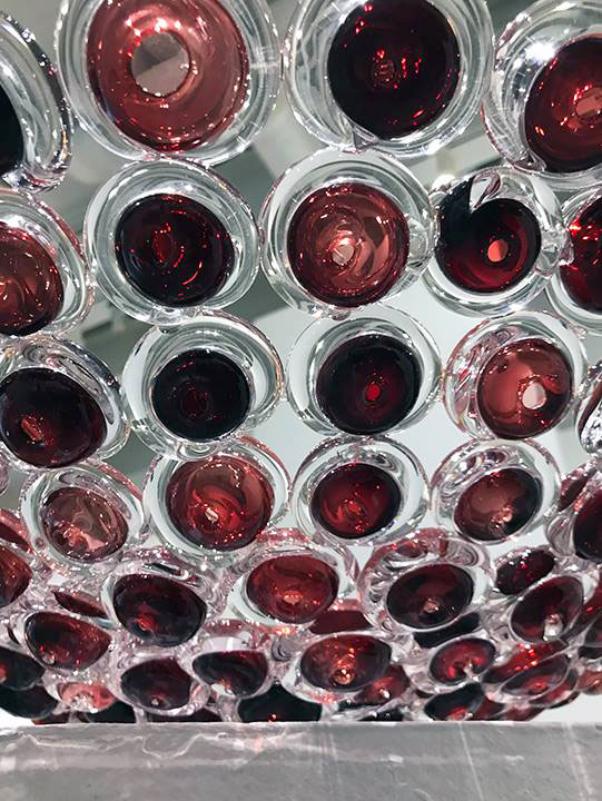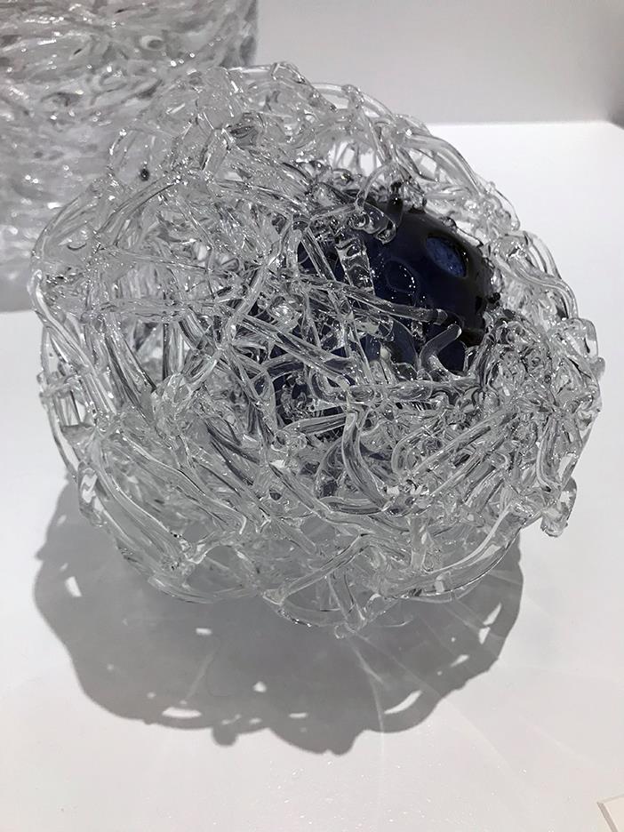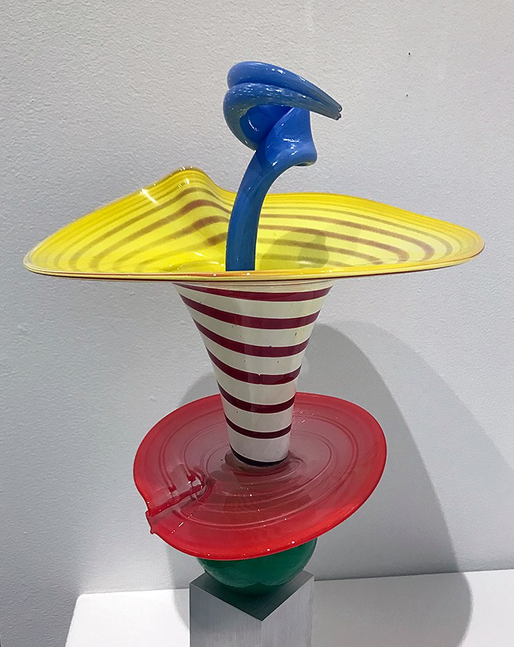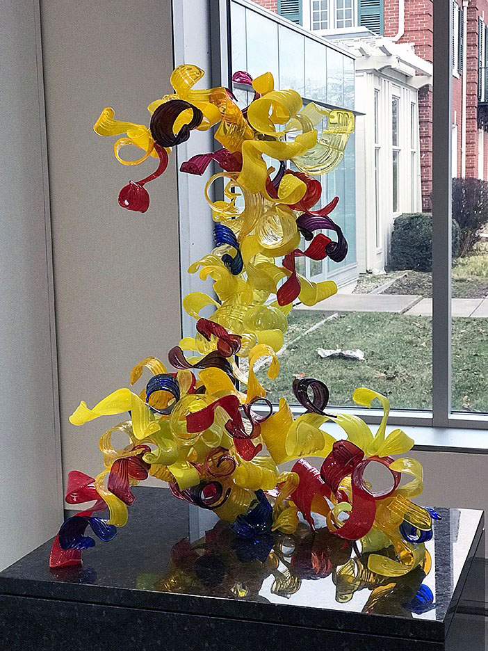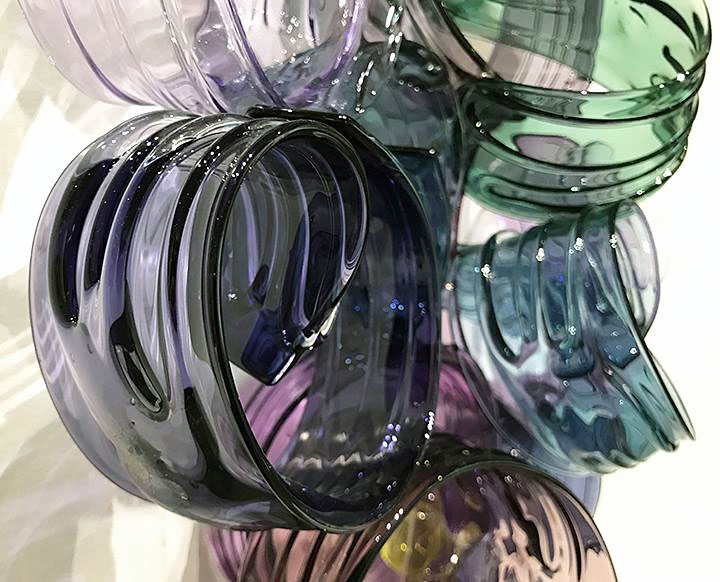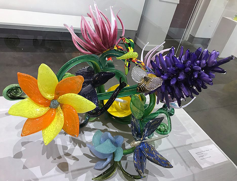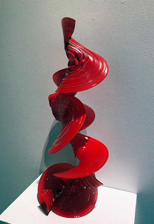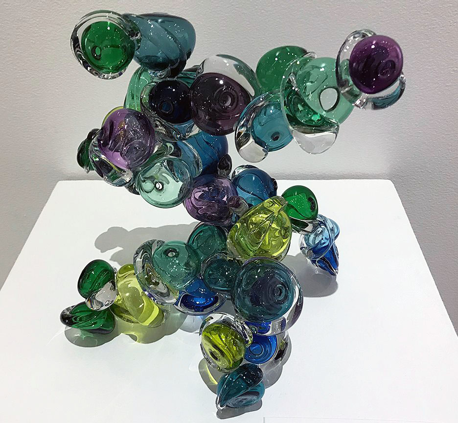 The Saginaw Art Museum hosted an exhibit of soda lime glass by Michigan artist April Wagner. This is “Stacked Peaz” from 2009.