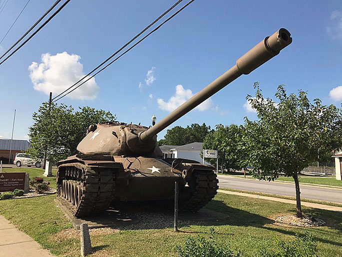 This may seem weird, because I’m a lifelong pacifist, but you can’t visit where I grew up and not encounter tanks. We saw several along the roadside. This particular one is smack in the middle of my hometown, Radcliff, and along the parade route of the annual Golden Armor Festival. Radcliff is a bedroom community to Fort Knox, which meant we had to fill out federal forms at school every year to say whose folks were military to channel the appropriate amount of aid, some of which came in the form of Army surplus food for the cafeteria. The building back to the left used to be the town fire station; when I was small the siren would blow at noon and that was my signal to go home for lunch.
