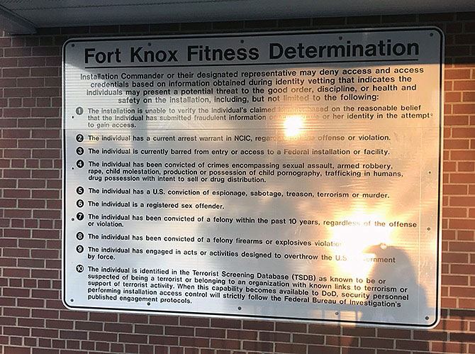 We visited with several relatives, among them an uncle who lives “on post,” as we always said, meaning on the Fort Knox base. I have an entry pass for the next year after stopping into this building and presenting ID for clearance.