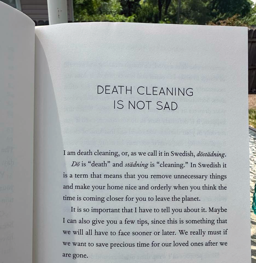 Another day, another book. I’m of a practical mind about death cleaning and don’t want to overwhelm whoever has to deal with everything I’ve accumulated. I have too much stuff. Sorting it and sending things elsewhere is tedious, and I can be more cheerful about it if I think of the process as a gift to others.