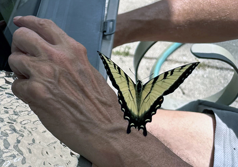This swallowtail joined us in the backyard Sunday and I was SO excited. We are used to monarchs (more on those later) and cabbage whites, but this is first of these we’ve seen this summer.