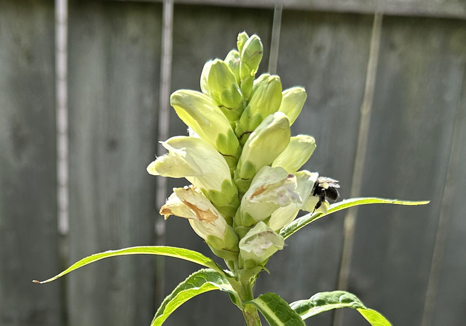 Most flowers in our yard are spent, so we’re grateful the turtlehead have just come into bloom and our bee friends have food.