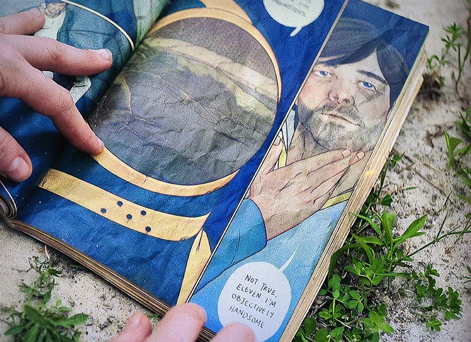 Within the day I was watching “Station Eleven.” A character was reading a graphic novel on a beach and this is what I caught down in the corner:
